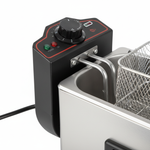 Fill the tank with oil to the recommended level, set your desired temperature, wait for the indicator light to show oil is ready, load food into the basket, lower into oil, and fry until golden. The simple controls make operation straightforward for staff of all experience levels.