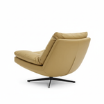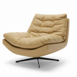 This modern swivel lounge chair combines mid-century inspired design with plush, button-tufted comfort. Upholstered in vibrant mustard yellow fabric, the generously padded seat and backrest feature classic button tufting that adds visual texture while maintaining cushion shape. The sleek black cross-base provides smooth 360° rotation, making this chair as functional as it is stylish. Perfect for adding a bold pop of color and exceptional comfort to any space.