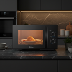 Everyday reheating, defrosting, and cooking — perfect for home kitchens, office pantries, student accommodation, and anyone who prefers the simplicity and reliability of classic rotary dial controls in a bold, stylish matte black microwave.