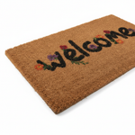 - "Welcome" Embossed Design — Classic dark brown embossed "welcome" lettering carved into the natural coir surface — a timeless, universally loved design.